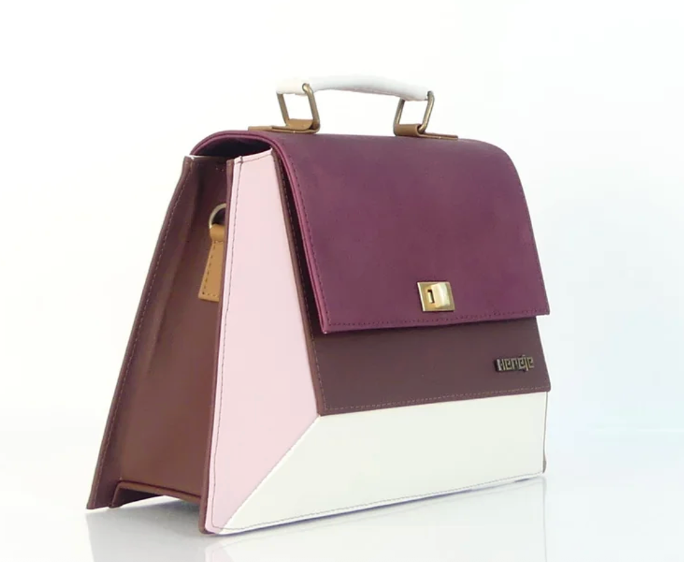 Diseño clásico y atrevido, con manija corta para llevar de mano y correa larga extraíble. Tiene doble compartimiento, dos bolsillos internos y cierre de doble seguridad con tapa de herraje en torniquete y cremallera interna. Cierre principal de cremallera.